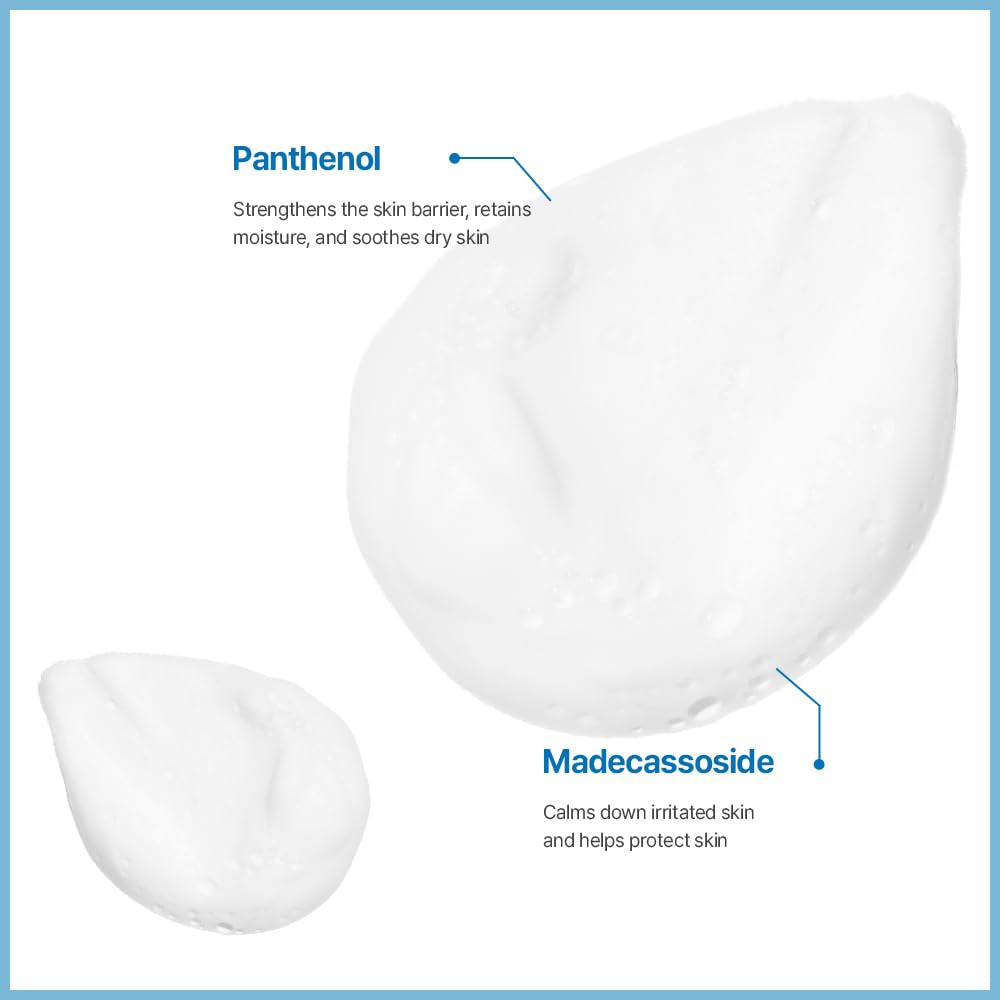 - Ce nettoyant au pH doux contient du panthénol pour hydrater la peau et du madécassoside issu de la Centella asiatica pour aider à résoudre les problèmes cutanés.